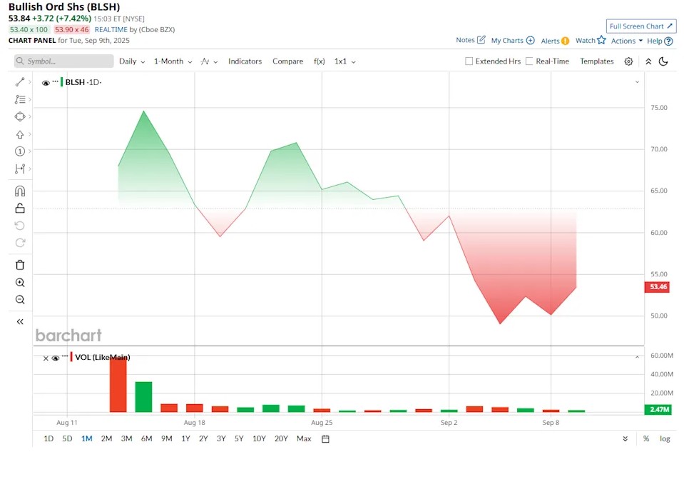 It is reported that Bullish's IPO performance is enough to catch the market's attention: it raised $1.1 billion in its initial public offering, with the stock price rising 83% on the first day. This crypto exchange, established in 2021, has accumulated a trading volume exceeding $12.5 trillion, and its market capitalization has stabilized at $7.3 billion—even though the stock price has retraced more than 50% from its peak, the topic's popularity remains undiminished.
