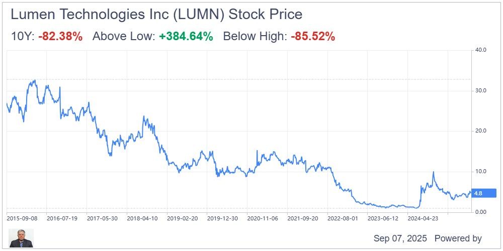 Lumen 的股票在過去 10 年中下跌超過 80%。