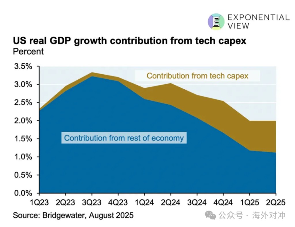 衡量经济压力的一个方法,是观察某项投资占 GDP 的比重——也就是全国产出中有多大比例被投入同一个技术前沿领域。这比例粗略但很能说明问题:它显示整个经济有多大程度押注在单一技术上。
