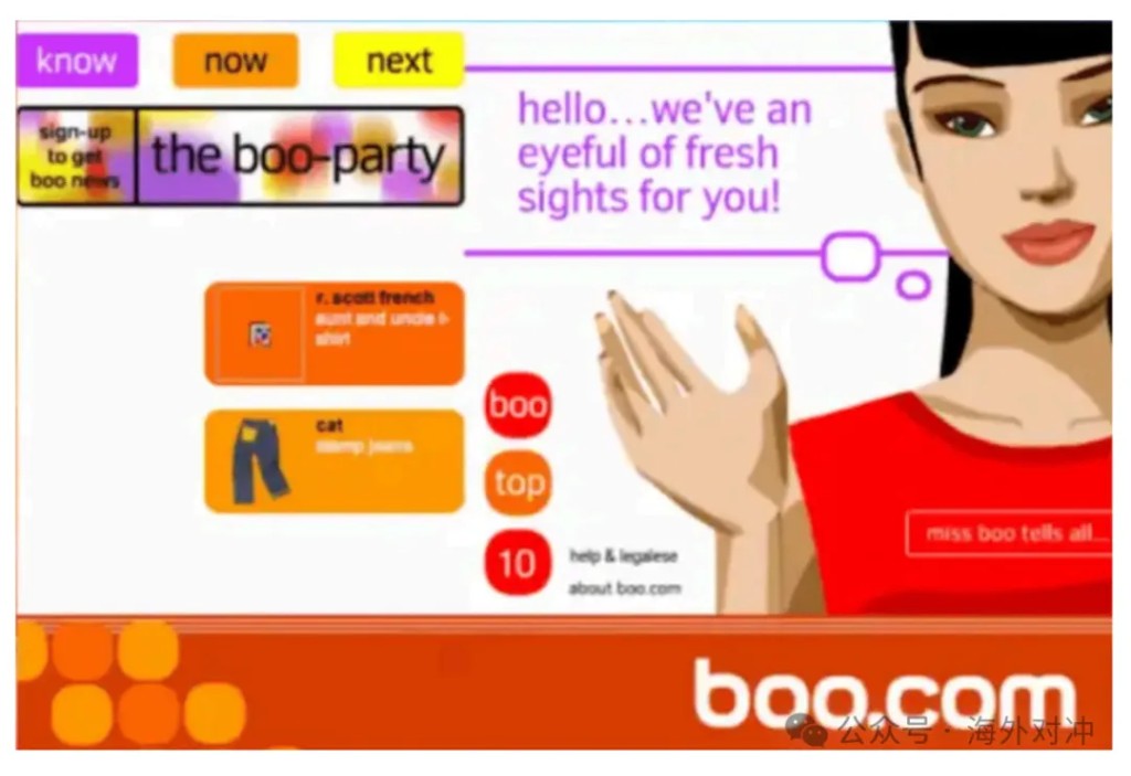 这家公司在上线前就砸下 2,500 万美元做广告,员工从 40 人暴涨到 400 人,并在纽约和欧洲开设了豪华办公室。他们的网站大量使用 JavaScript 和 Flash,在拨号上网环境下几乎无法使用,还与 Mac 电脑不兼容且漏洞百出。每四次尝试购买就有一次失败。尽管公司极尽铺张(奢华派对、搭协和飞机、为 “Miss Boo” 请名人造型师等),调查却显示只有 13% 的互联网用户知道这个品牌。不到 18 个月,资金耗尽。2000 年 5 月,Boo.com 宣告倒闭。