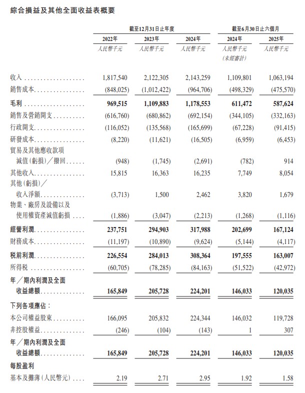 八馬茶業利潤及全面收入總額由截至 2022 年 12 月 31 日止年度的人民幣 1.66 億元增長至截至 2023 年 12 月 31 日止年度的人民幣 2.06 億元,再增長至截至 2024 年 12 月 31 日止年度的人民幣 2.24 億元。