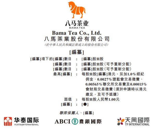 智通財經 APP 獲悉,據港交所 10 月 12 日披露,八馬茶業通過港交所主板上市聆訊,華泰國際、農銀國際、天風國際為聯席保薦人。