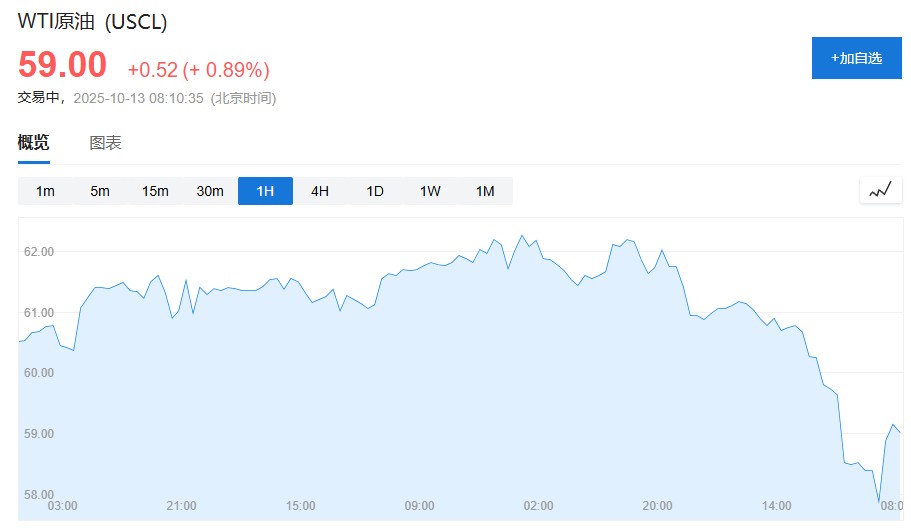 大宗商品方面,WTI 原油上漲 0.9%,至每桶 59 美元。