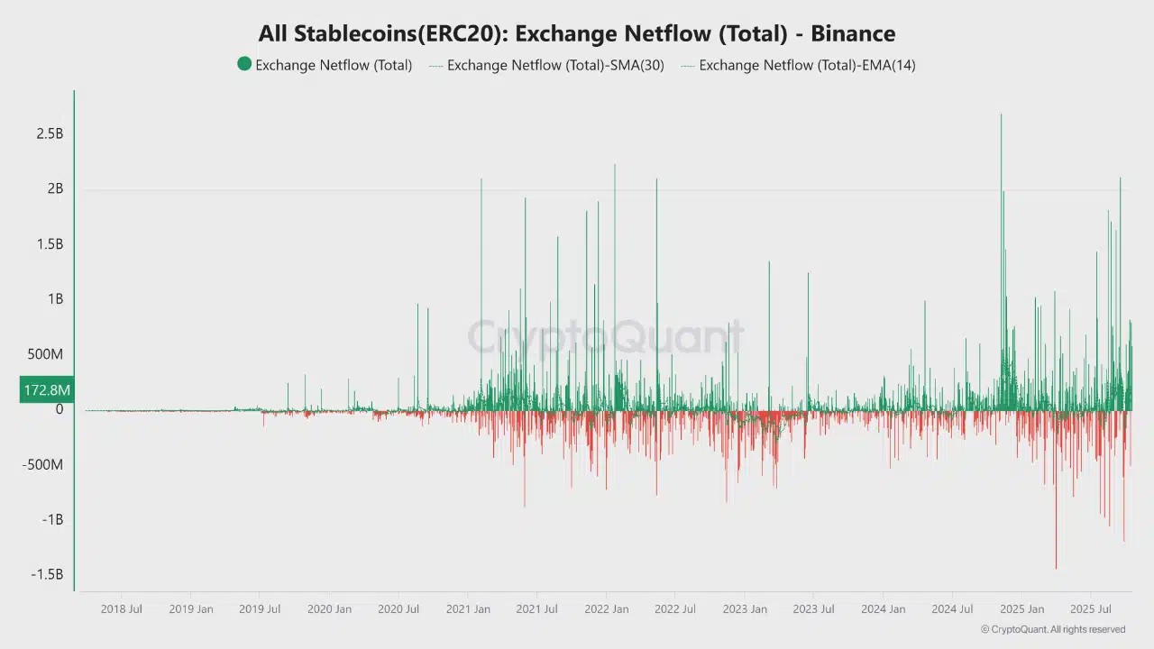 The rise in USDT and USDC on ERC20 and TRC20 shows capital is flowing back to Binance. Investors may be getting ready to buy or hedge ahead of market moves. This could fuel a short-term rally or consolidation.