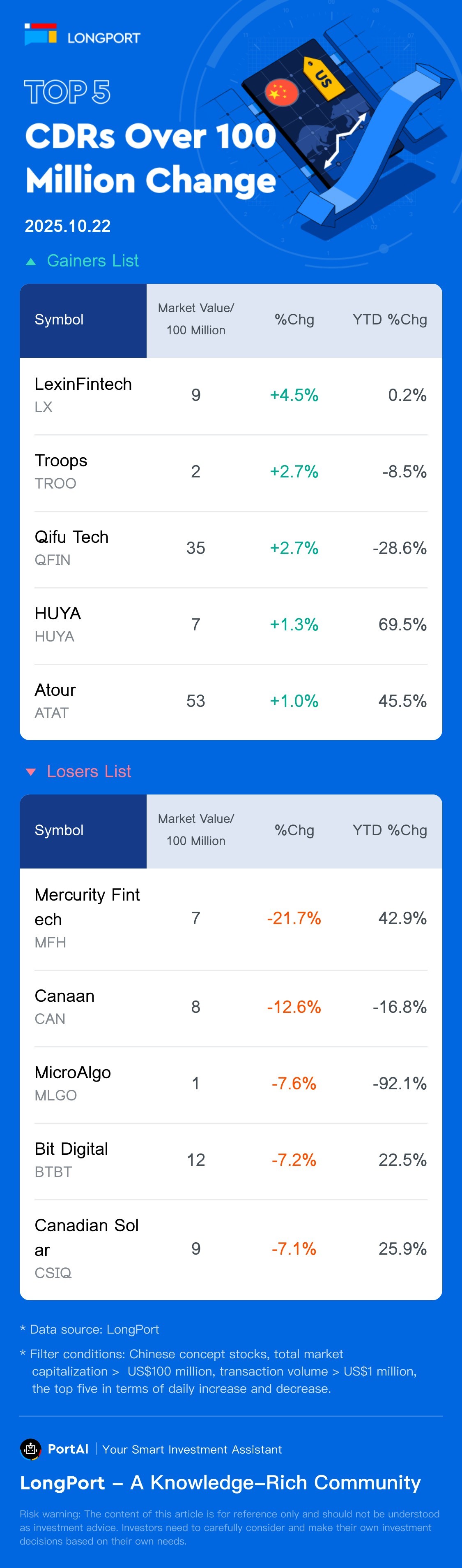Top 5 CDRs Gainers/Losers (>100M) (10.22)