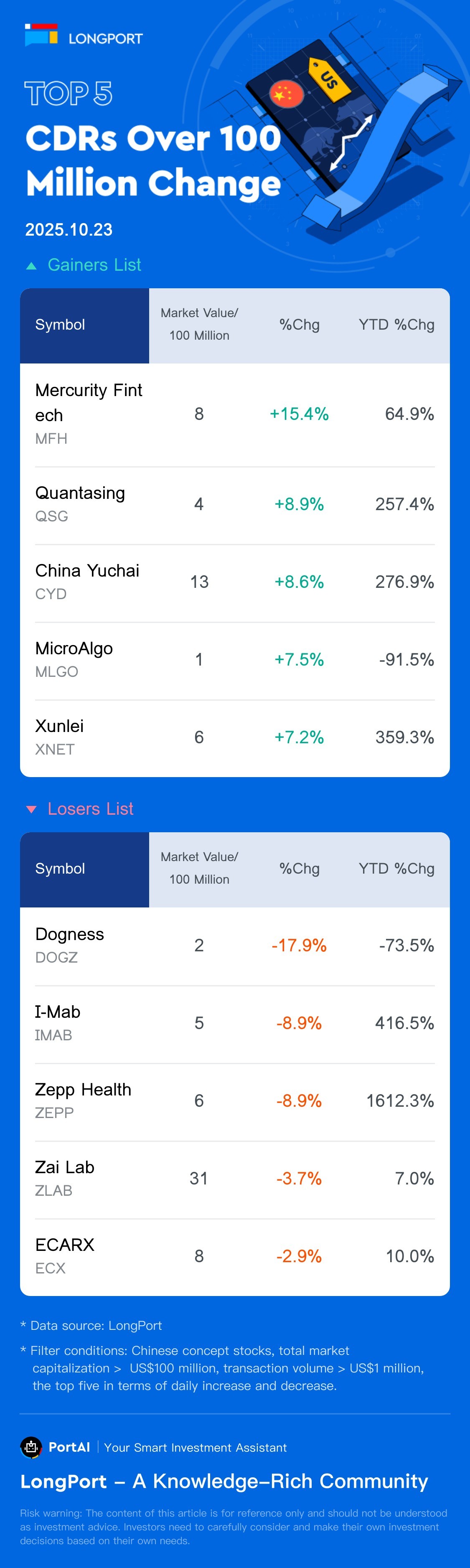 Mercurity Fintech(MFH) rose 15.37%, with a trading turnover 1.9 Million USD, and a year-to-date rose 64.9%. Quantasing(QSG) rose 8.89%, with a trading turnover 2.6 Million USD, and a year-to-date rose 257.4%. Dogness(DOGZ) fell 17.88%, with a trading turnover 8.0 Million USD, and a year-to-date fell 73.5%. I-Mab(IMAB) fell 8.92%, with a trading turnover 6.4 Million USD, and a year-to-date rose 416.5%.