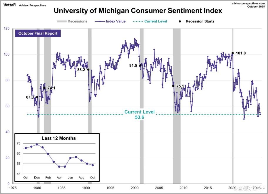 Joanne Hsu, the survey director at the University of Michigan, stated that overall confidence has not changed much this month, with a slight rebound in confidence among younger consumers, while middle-aged and older groups have seen a significant decline. Current personal financial situations have slightly improved, but expectations for future finances have weakened. She pointed out that consumers generally believe there has been no significant change in overall economic conditions compared to last month, with inflation and high prices remaining overwhelming sources of pressure. Notably, despite the ongoing federal government shutdown, only about 2% of respondents mentioned the potential impact of the shutdown on the economy, far below the 10% during the 2019 shutdown.
