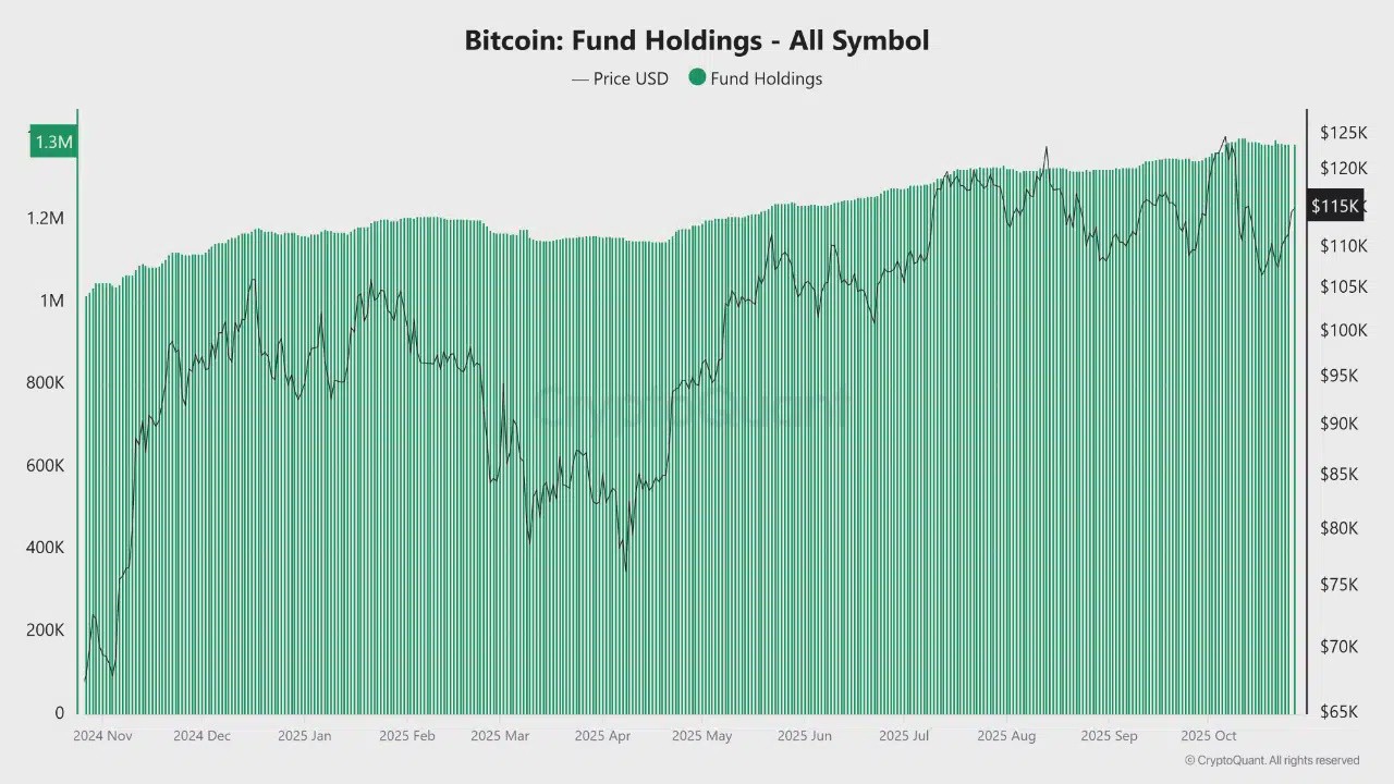 Bitcoin continues to serve as a stable reserve asset, with fund holdings rising a modest 36% to 1.3 million BTC.