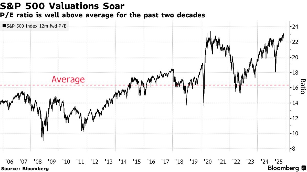Currently, the forward price-to-earnings ratio of the S&P 500 index is about 23 times, significantly higher than the average level of 16 times over the past 20 years; the so-called "seven tech giants" account for more than one-third of the index, with a forward price-to-earnings ratio as high as 31 times.