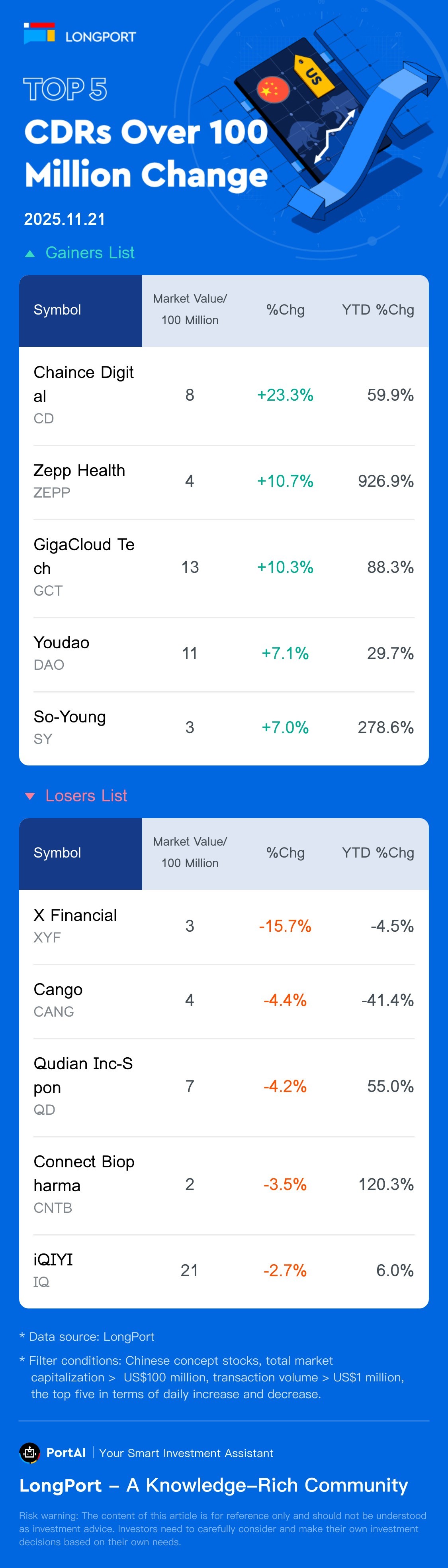 Top 5 CDRs Gainers/Losers (>100M) (11.21)