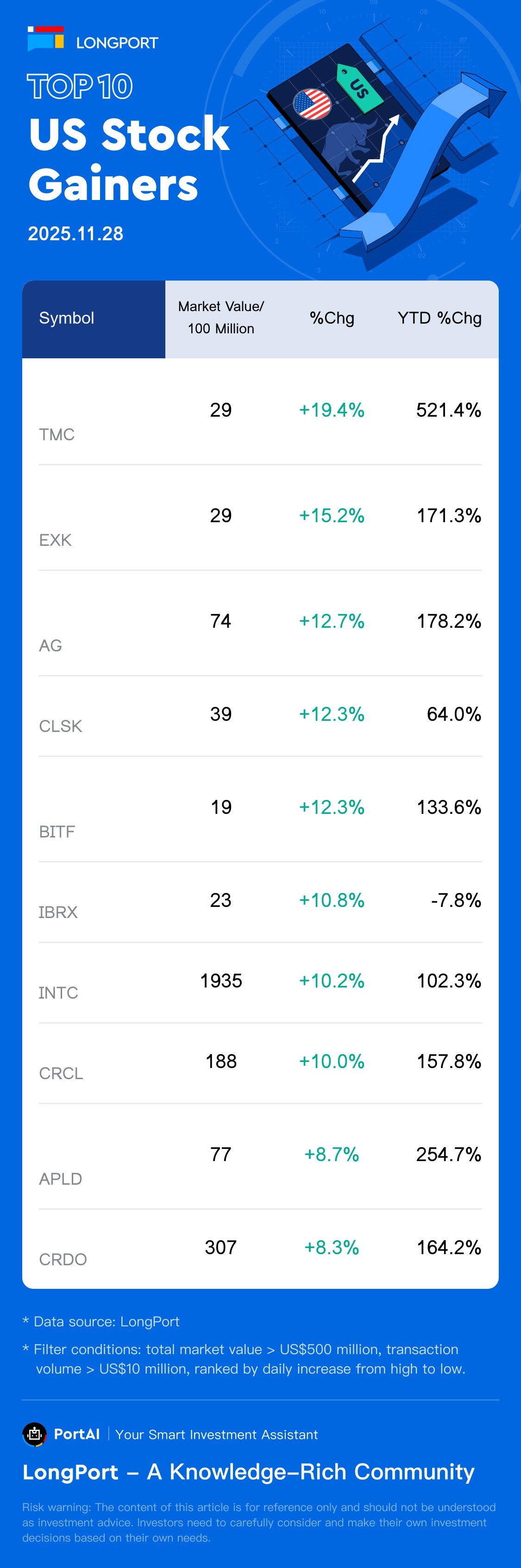 Top 10 US Stock Gainers (11.28)