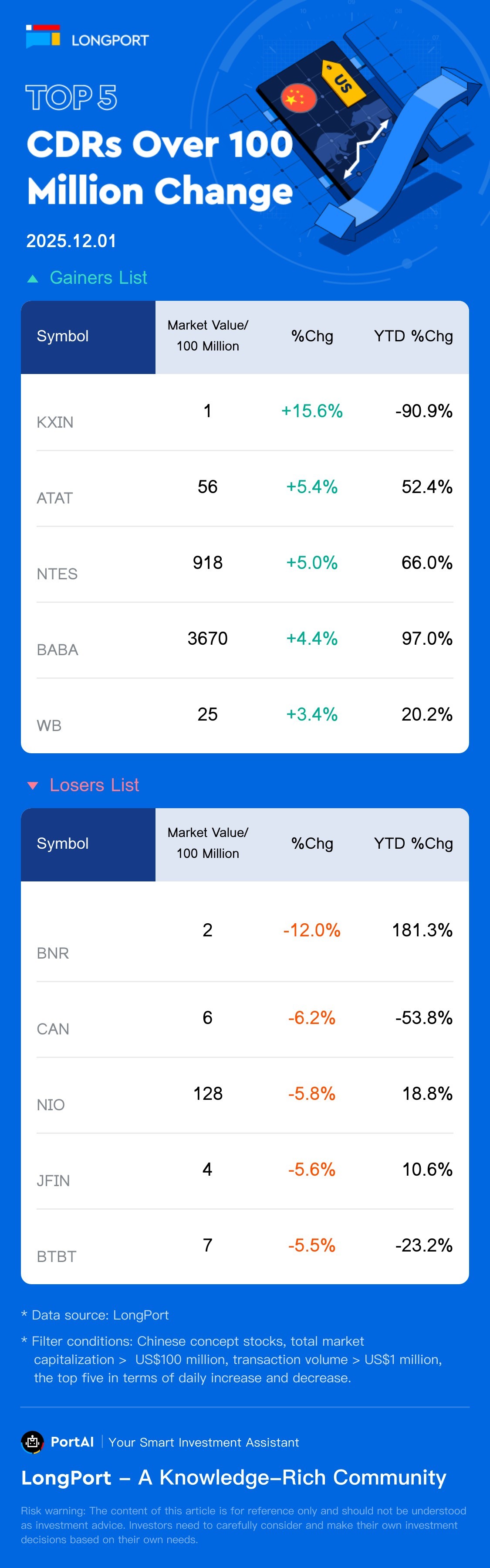 Kaixin(KXIN) rose 15.56%, with a trading turnover 9.4 Million USD, and a year-to-date fell 90.9%. Atour(ATAT) rose 5.37%, with a trading turnover 77.7 Million USD, and a year-to-date rose 52.4%. Burning Rock Biotech(BNR) fell 12.04%, with a trading turnover 1.7 Million USD, and a year-to-date rose 181.3%. Canaan(CAN) fell 6.16%, with a trading turnover 31.7 Million USD, and a year-to-date fell 53.8%.
