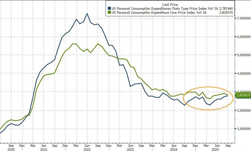The core PCE inflation of 2.8% in September, which the Federal Reserve is concerned about, is generally in line with expectations, while actual personal spending stagnates