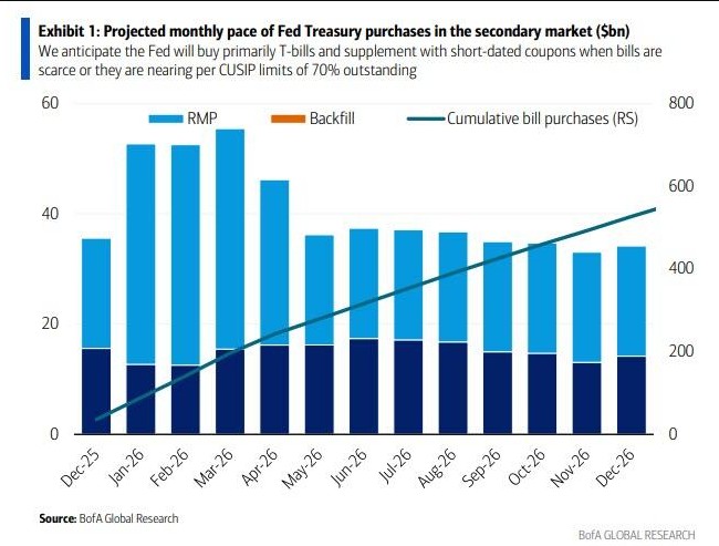The Federal Reserve announced a Reserve Management Plan (RMP) to purchase $40 billion in short-term Treasury securities each month, a move that far exceeds market expectations, prompting major Wall Street investment banks to revise their debt issuance forecasts for 2026.