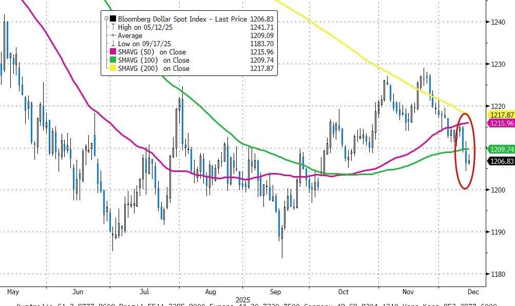 Goldman Sachs' foreign exchange team predicts that the dollar will depreciate significantly by 2026. In fact, the dollar index has already shown signs of weakness, declining for three consecutive weeks, and has fallen below the 50-day and 200-day moving averages since December, approaching a three-month low.