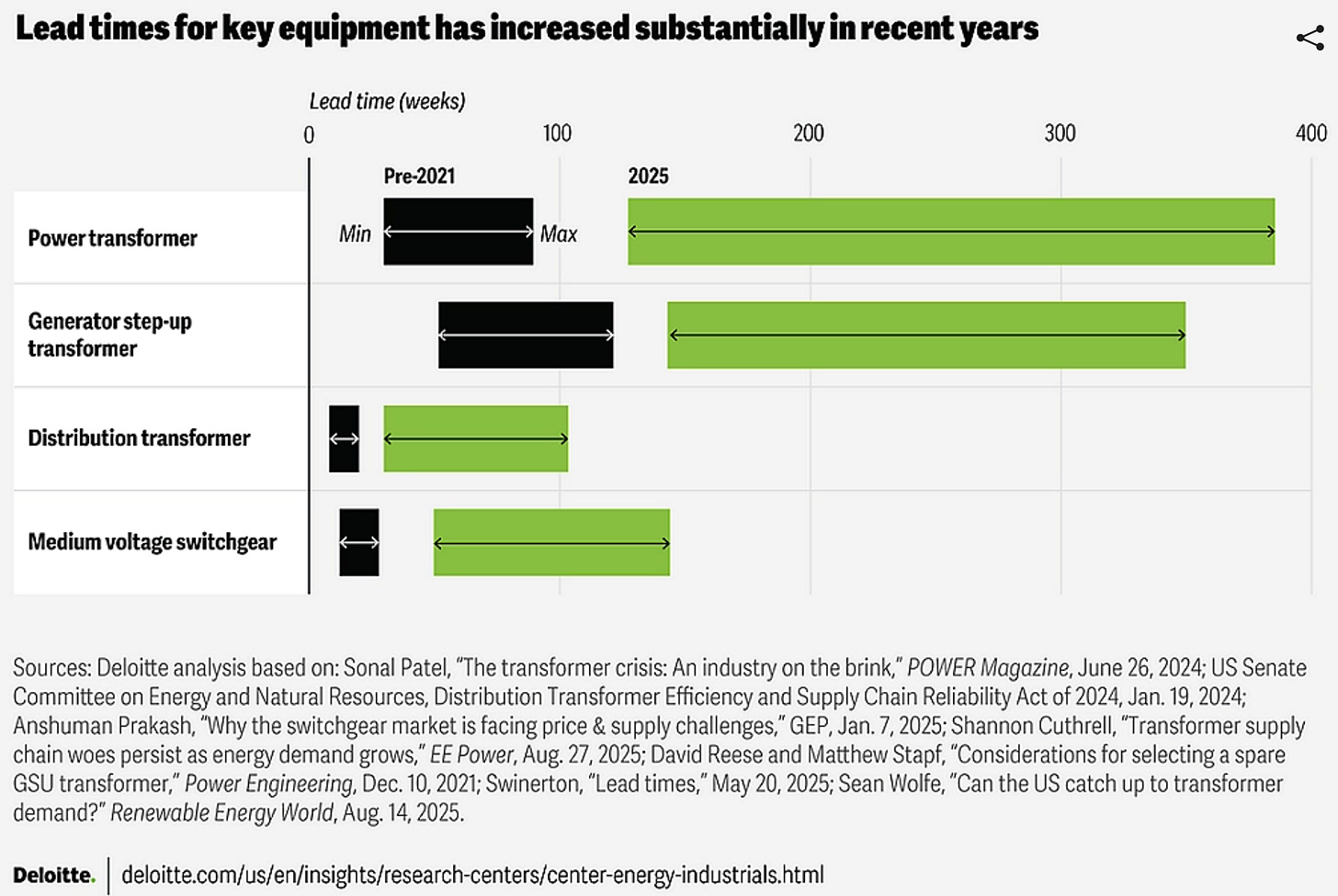 從我在國會山的對話以及與華盛頓特區政策制定者相關人士的交流中,你常常會聽到供應鏈問題仍然是一個持續的商業規劃問題。這是因為幾乎任何與能源相關的項目都必須面對獲取變壓器的漫長時間表,並且不斷面臨天然氣渦輪機的積壓問題。