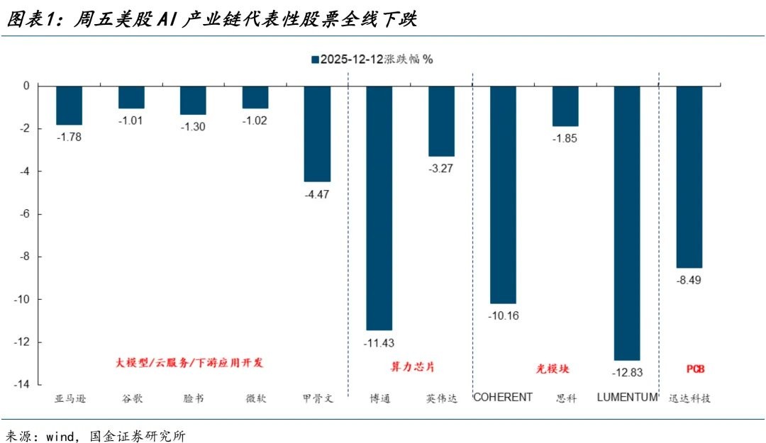 Guotai Junan Securities believes that the divergence between AI investment and AI stock performance will become the norm in the future, similar to the new energy investment and stock performance after 2021. Although US AI tech stocks such as Oracle and Broadcom fell this Friday, the market's concerns about their future performance realization are the core issue. Investors should focus on the macro effects of sectors benefiting from AI investment trends, rather than getting entangled in the AI bubble
