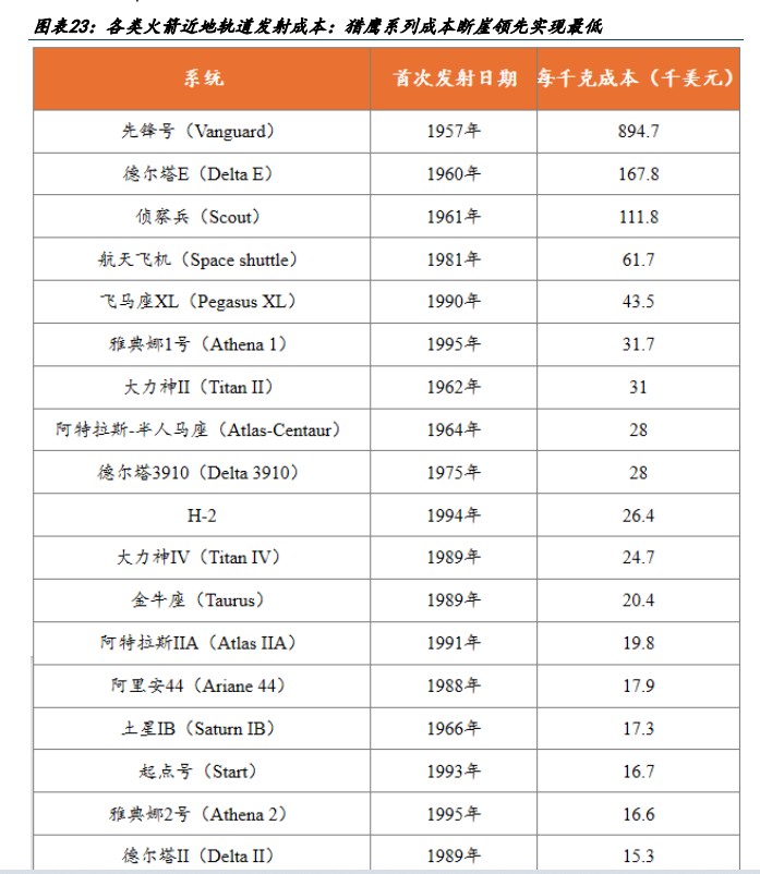 The Guojin Securities report points out that before the rise of SpaceX, the global launch market was dominated by state-owned enterprises, following a "cost-plus" contract model, where contractors lacked the motivation to control costs. The report cites comparative data, noting that the cost for NASA's Space Shuttle to send payloads into low Earth orbit was about $54,500 per kilogram, while SpaceX's Falcon 9 has reduced this figure to $2,720 per kilogram, a nearly 20-fold decrease.