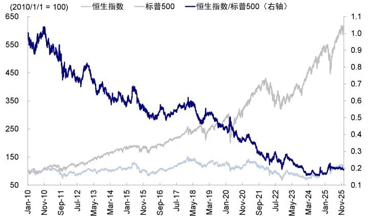 儘管我們在 2026 年度展中給出的美股空間 13-16%(標普 500 點位 7600-7800 點)和港股空間 8-10%(恒指點位 28000-29000 點),但這樣一個整體的對比,有過於簡單化且偷懶的嫌疑,還要充分考慮流動性、基本面和結構性機會三個維度在不同時間和結構上的差異。