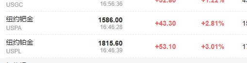 Spot gold rose 1.1%, reported at $4,347.42 per ounce; spot silver rose 3%, reported at $63.87 per ounce; New York platinum rose over 3%;