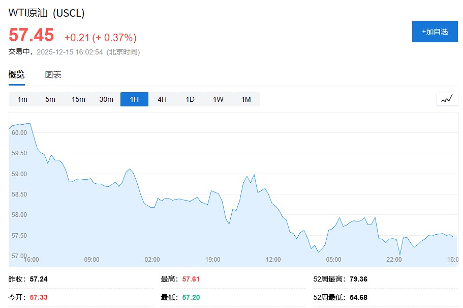 WTI crude oil futures rose 0.4%, quoted at $57.35 per barrel; Brent crude oil rose 0.4%, quoted at $61.35 per barrel;