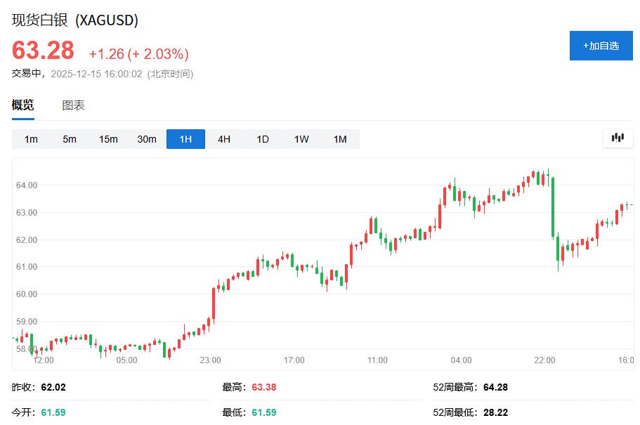 Spot silver also climbed again today, as of the time of writing, silver rose over 2%, reported at $63.28 per ounce.