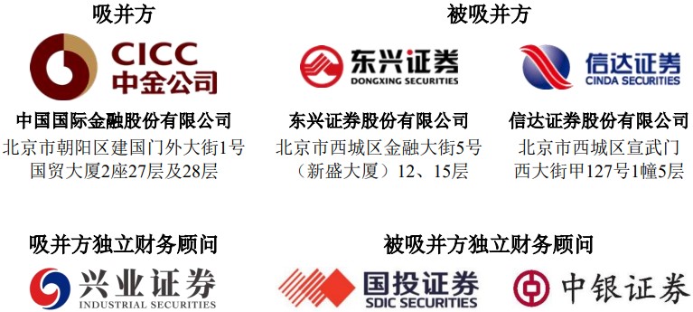 (如上圖)資事堂注意到公告一處細節:中金公司作為吸收合併方,聘請了興業證券擔任獨立財務顧問;東興證券和信達證券則聘請了國投證券和中銀證券,作為被吸收方的獨立財務顧問。