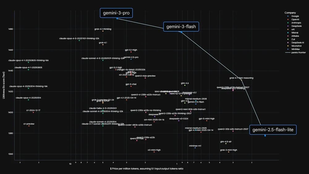 Gemini 3 Flash 在多項基準測試中展現出接近甚至超越更大型模型的表現。