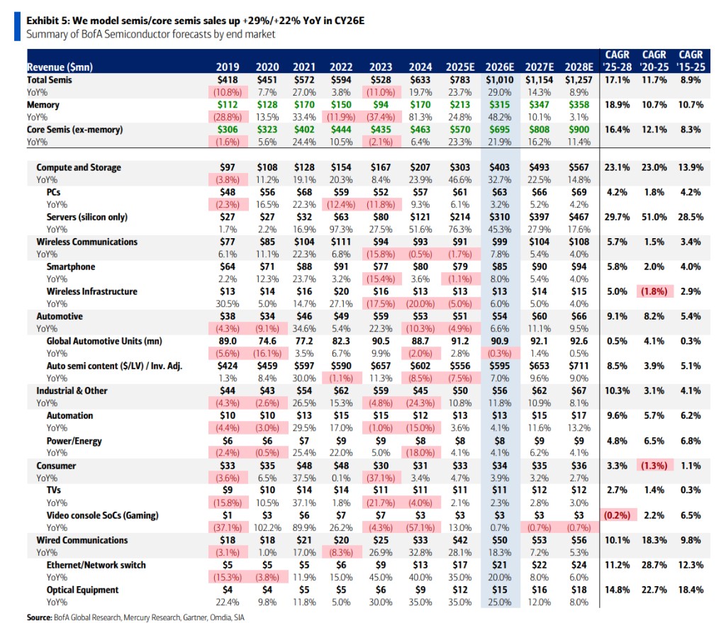 Bank of America 2026 Semiconductor Outlook: Key Midpoint for AI Infrastructure Upgrade, Chip Sales Expected to Exceed $1 Trillion for the First Time