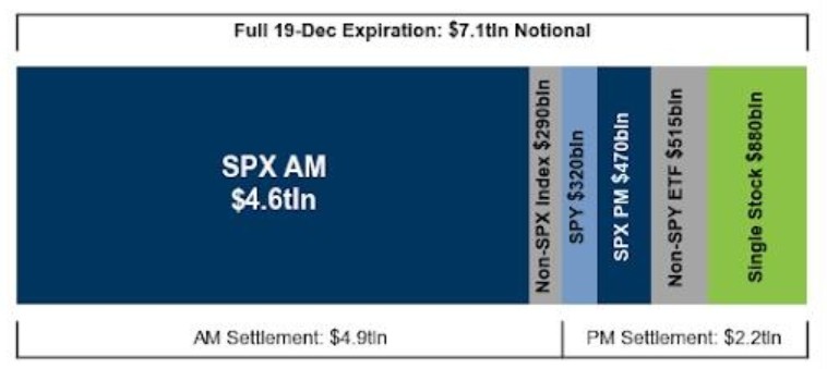 The attention surrounding this options expiration is primarily due to its unprecedented scale. According to Goldman Sachs analyst John Marshall's estimates, over $7.1 trillion in notional risk exposure will expire today.