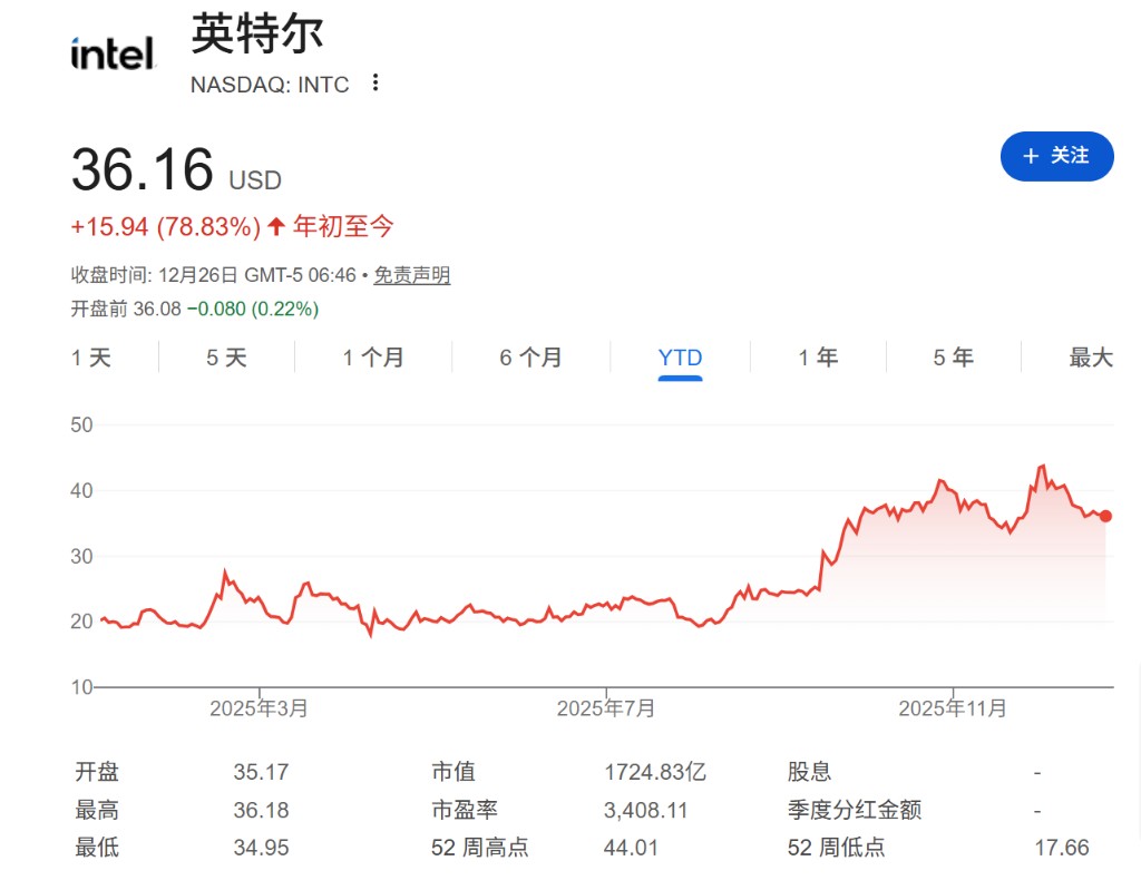 根據協議,英偉達以每股 23.28 美元購入英特爾普通股。合作公佈後,市場迅速反應。英特爾美股盤前一度暴漲 30%,而另一競爭對手 AMD 跳水,跌幅超過 4%。