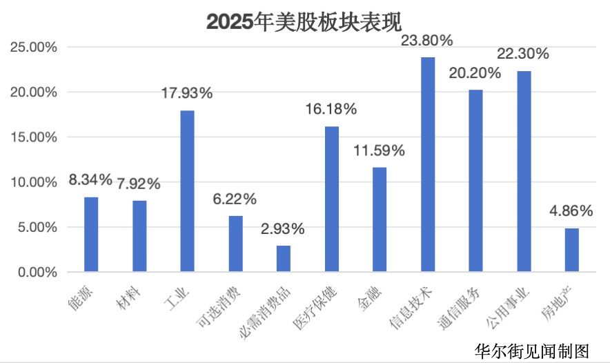 In 2025, the US stock market exhibited a clear structural differentiation, with the information technology and communication services sectors, driven by capital expenditure in artificial intelligence, leading the market. Together, they formed the main theme of technology throughout the year. Notably, the utilities sector emerged strongly, reflecting the market's reassessment of stable cash flow assets amid intertwined expectations of interest rates and economic uncertainty, as well as a long-term bet on infrastructure investment for the green energy transition.