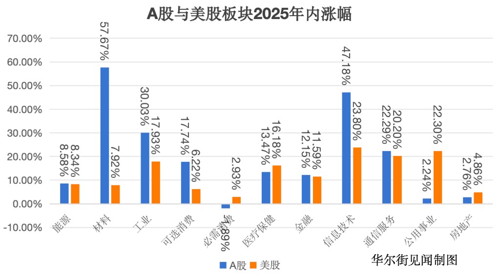 In contrast, the A-share market demonstrates a more balanced and multi-polar growth pattern. From the industry performance data of 2025, the market shows characteristics of blooming in multiple areas: materials (+57.67%), information technology (+47.18%), and industrials (+30.03%) are leading sectors, collectively forming a dual-engine structure centered on the "advanced manufacturing industry chain" and "key resource supply chain." This structural feature indicates that the A-share market is not dominated by a single logic. On one hand, driven by both domestic production and global AI hardware demand, sectors such as telecommunications, electronics, and computers continue to strengthen; on the other hand, the strategic resource sector, represented by non-ferrous metals, performs particularly well, reflecting a strategic reassessment by the capital market regarding supply chain security and the autonomy of key materials in the context of global industrial chain restructuring and energy transition.