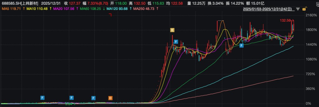Tianpu Co., Ltd., which mainly produces automotive parts, achieved a 16-fold surge in stock price in 2025, rising from 10 yuan to a high of 218 yuan, driven by the dual fermentation of AI chip backdoor expectations and TPU themes, attracting capital's collective pursuit.