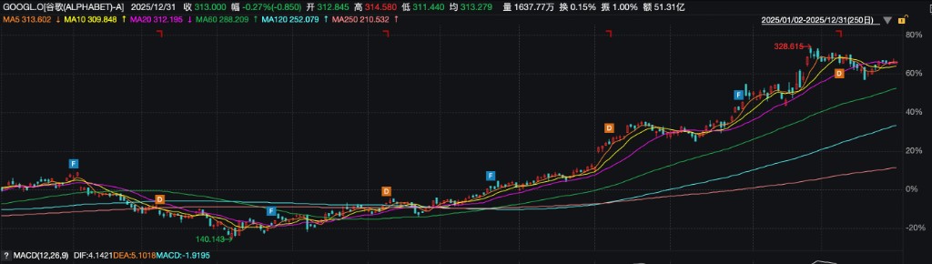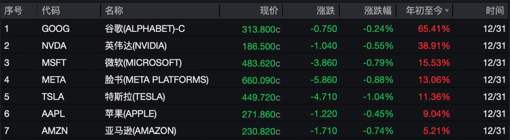 In 2025, the performance of the "Tech Seven Giants" showed significant differentiation. Besides Google (with a cumulative increase of about 66%) and Nvidia (with a cumulative increase of about 39%) significantly outperforming the market, the other five giants—Microsoft, Meta, Tesla, and others—saw increases between 11% and 15%, failing to surpass the annual increase of the S&P 500 index