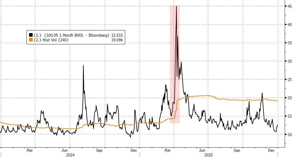 - 實際波動率飆升:全年實際波動率(Realized Volatility)高達 19%,處於歷史第 83 百分位的高位。