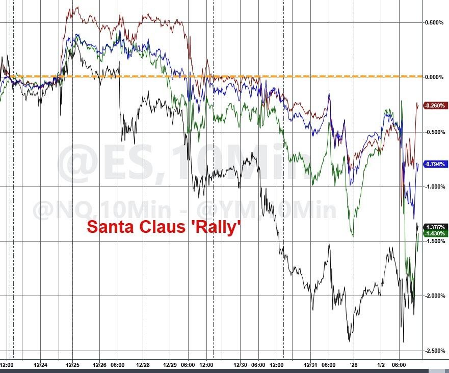 新年第一天開盤,美股表現平平,納指甚至是下跌的,市場熱盼的美股 “聖誕行情” 基本是失敗了。