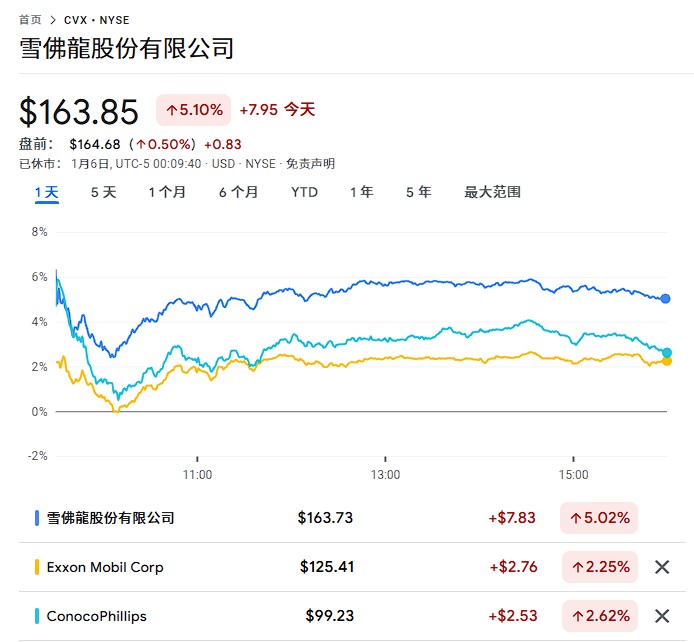 市場對這一前景反應積極。週一雪佛龍股價上漲約 5%,埃克森美孚上漲約 2%,康菲石油上漲近 3%。投資者似乎看好委內瑞拉可能成為美國石油公司的新前沿陣地。