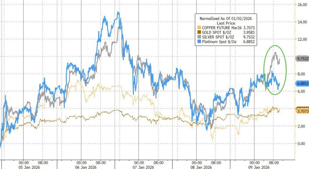 與此同時,貴金屬也表現強勁。白銀本週飆升 10%,鉑金緊隨其後。