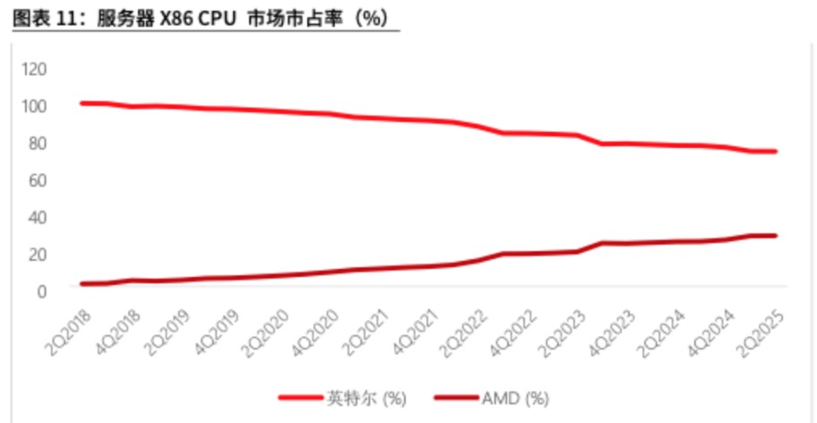 ① Direct benefits: AMD EPYC processors have established a good reputation in the AI inference market due to their advantages in core count, memory bandwidth, and energy efficiency. The demand for CPU computing power driven by Engram will allow AMD to directly gain market share with its existing product strength. Notes from the conference call indicate that AMD's global server CPU market share has exceeded 40%, with rapid growth in markets outside of China.