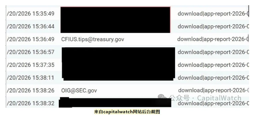 However, the agency made it clear that this batch of "nuclear-level" materials has entered the regulatory view. The article stated: "We have formally submitted the complete evidence chain, which has been organized and cataloged, to U.S. regulatory authorities." To substantiate this claim, Capitalwatch included a screenshot in the article showing access records from IP addresses of U.S. government agencies.