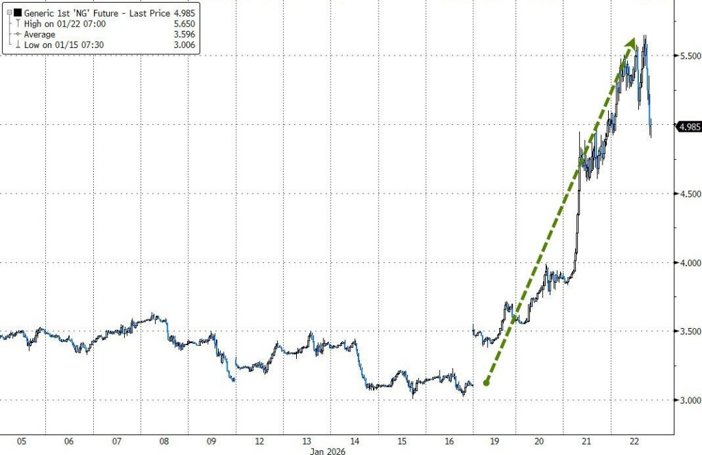 地緣政治風險溢價的消退,疊加美國上週 EIA 原油庫存超預期增加 360 萬桶,原油跌 2%,WTI 原油跌破 60 美元關口。與此同時,美國天然氣價格在連續三日暴漲超過 85% 後,出現了高位回落的跡象。