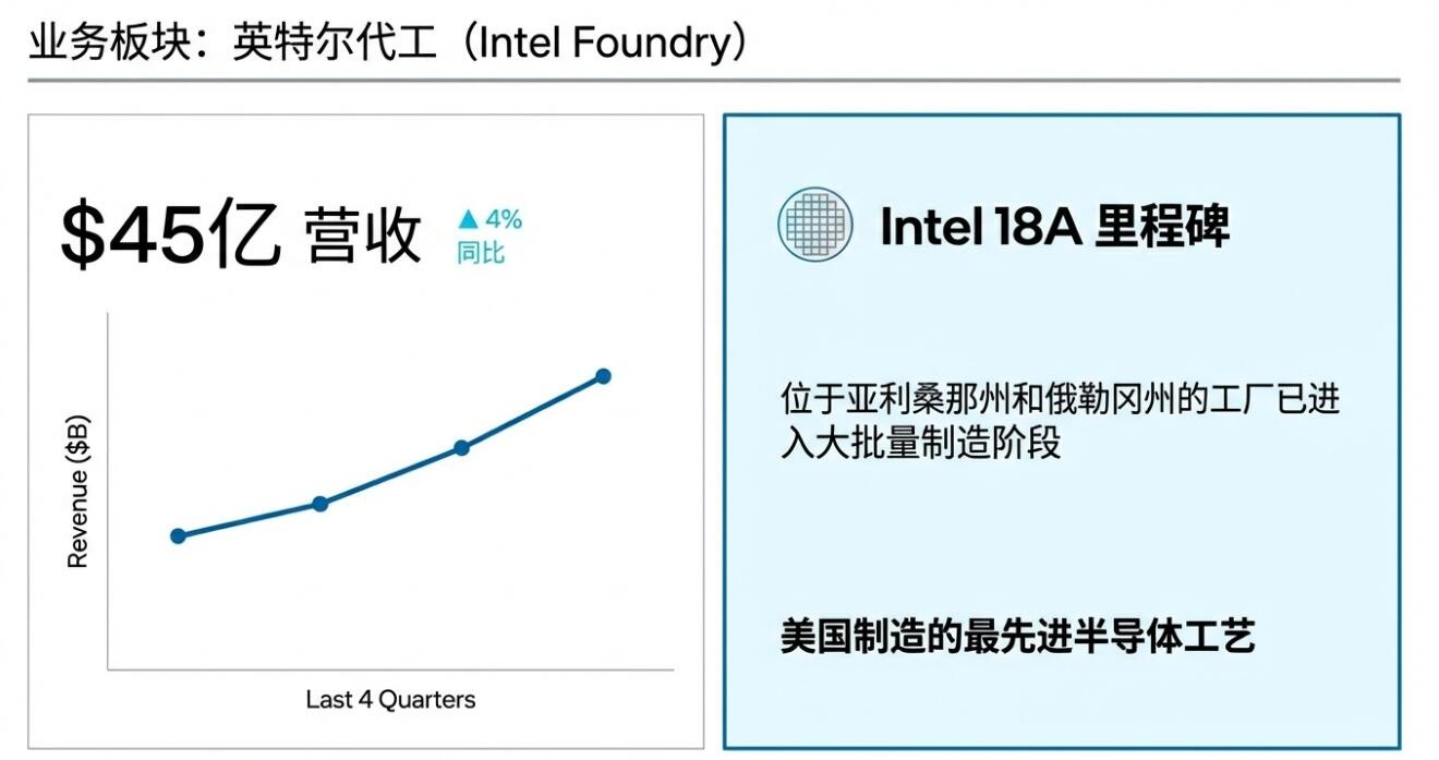 18A is the keyword that has been repeatedly emphasized in this earnings report. Intel announced that this process has achieved high-volume manufacturing in Arizona and Oregon, becoming the first leading process node to be mass-produced in the United States.