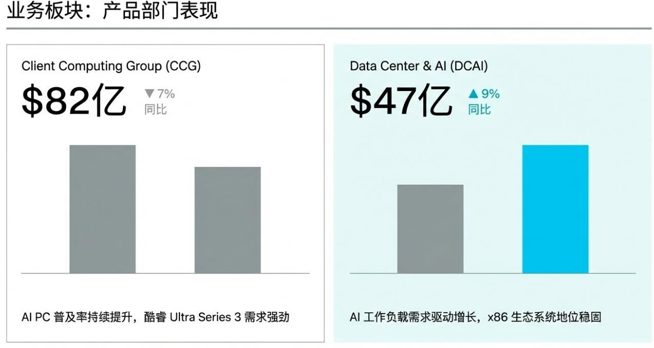 By segment, the Client Computing Group (CCG) revenue was nearly $8.2 billion, slightly below analysts' expectations of $8.3 billion. The Data Center and AI Group (DCAI) revenue was $4.7 billion, exceeding the expected $4.4 billion, with a year-on-year growth of 9%. The Intel Foundry Services revenue was $4.5 billion, a year-on-year increase of 3.8%, and this segment currently relies almost entirely on orders from Intel's product divisions.