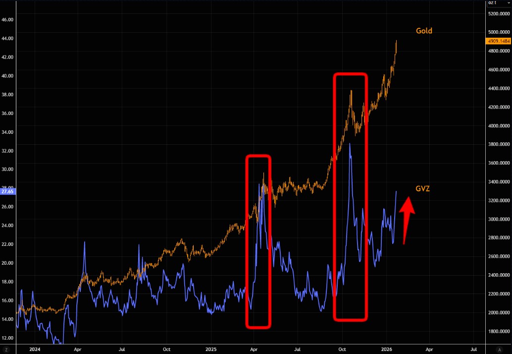 黃金價格連續第二天劇烈波動,但仍低於 10 月和 4 月的恐慌水平。通常情況下,在這個階段,投資者會被迫追逐上漲行情,僅僅是為了維持黃金倉位,這種現象在黃金上漲行情的後期經常出現。