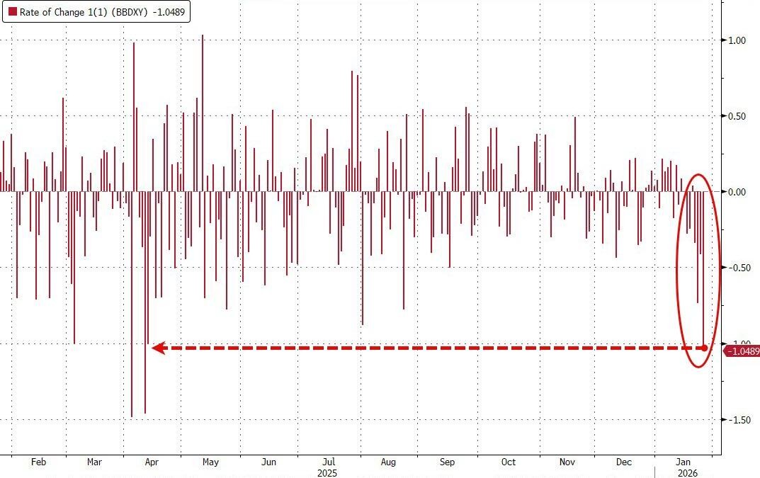 彭博美元現貨指數創去年 4 月特朗普公佈對等關税以來最大六日跌幅
