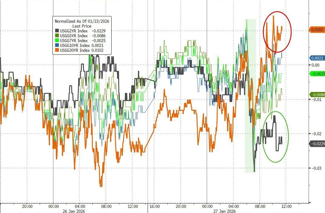 長短期美債收益率表現不一,短債收益率下行,長債收益率反彈