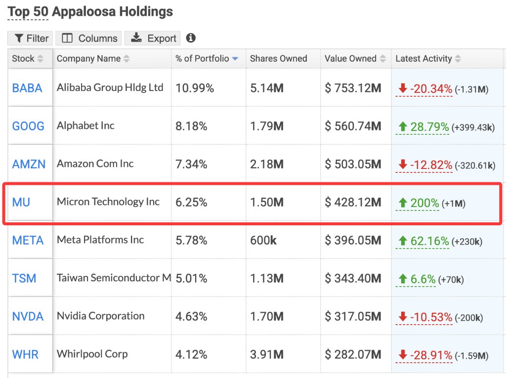 這位億萬富翁對沖基金經理將美光科技的持倉提升至 4.28 億美元,增幅達 200%,使這家 AI 系統關鍵內存芯片製造商成為該基金第四大持倉,據 InsiderScore 數據顯示。全球內存短缺推動美光股價今年已上漲近 30%。