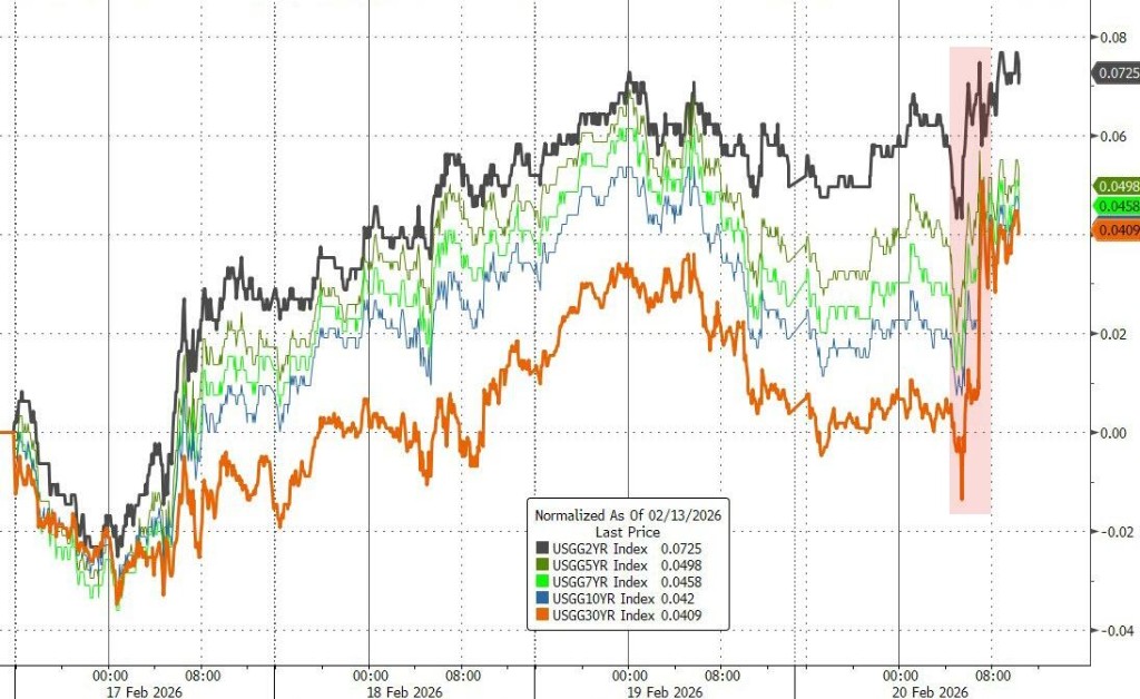 According to Wall Street News, the U.S. GDP grew only 1.4% in the fourth quarter. The government shutdown dragged down by 1 percentage point. The U.S. core PCE price index rose 3% year-on-year, exceeding expectations. Additionally, the failure of tariff revenue expectations has raised concerns about the expansion of the U.S. fiscal deficit and increased bond issuance, leading to a rise in U.S. Treasury yields and a slight weakening of the dollar during the day.