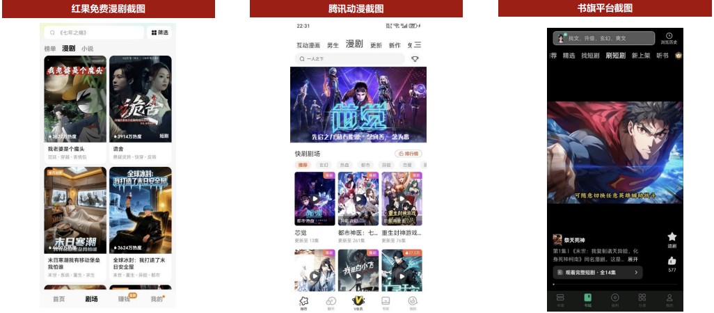 微信生態同樣在放量。2025 年微信生態漫劇上架數量同比增長 3380%。據浙商證券引用七麥數據,近 30 天紅果免費漫劇日均下載約 89 萬次,書旗約 20 萬次,騰訊動漫約 11 萬次。
